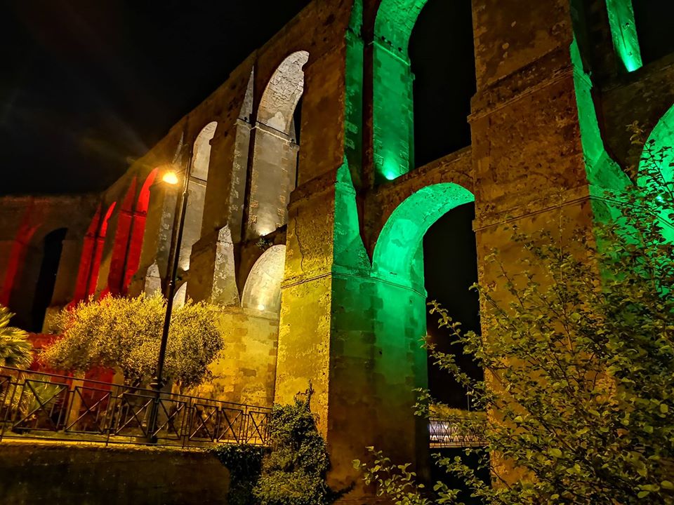The visible part of the aqueduct is 285 meters long and it is composed of 36 arches, with a maximum height of almost 20 meters. For many years the town needed a direct water supply inside the walls. Before the realization of the aqueduct, the water was collected in two cisterns collecting rain water, whose presence is documented since roman age, or from the near rivers called Rio Puzzolo and Rio Falisco.