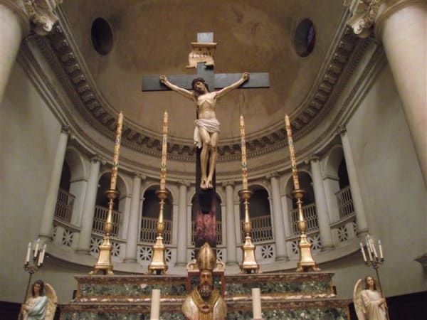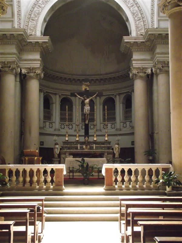 Construction started again only in 1588 and it ended in 1606, realizing a building which was very different from the one foreseen in the initial project. In the second half of the 19th century, by order of the monk Vincenzo Pistelli, the church was renovated. On the sloping roof a dome was built next to the tribune, and the rectangular apse became semicircular.