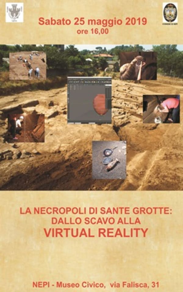 Oltre a parlare della realtà virtuale applicata all’archeologia, l’appuntamento di sabato sarà l’occasione anche per ricordare le importanti scoperte fatte e riflettere sulle prospettive future di una ripresa delle indagini archeologiche. Interverranno: Daniela Rizzo, all’epoca funzionario della Soprintendenza Archeologica e direttore delle campagne di scavo della necropoli di Sante Grotte, Daniele Federico Maras, funzionario della Soprintendenza Archeologica responsabile per il territorio di Nepi, Guido Fuganti e Marco Maciariello, della Studio Fuganti e associati, società specializzata nella progettazione e realizzazione di spazi espositivi per i beni culturali, che ha elaborato la ricostruzione virtuale delle sepolture.